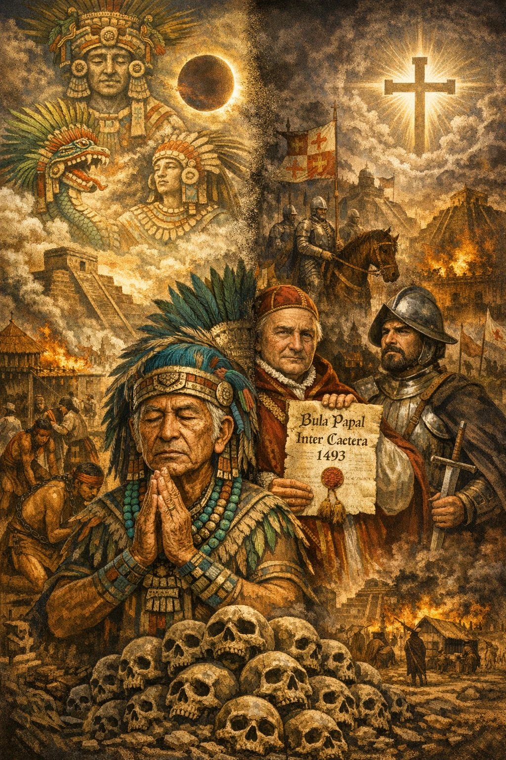 La historia oficial rara vez explica que la invasión del Anáhuac no fue solo militar, sino profundamente teológica. No se trató únicamente de espadas, arcabuces y caballos, sino de una interpretación religiosa impuesta que permitió justificar el despojo, la violencia y el exterminio de pueblos enteros.