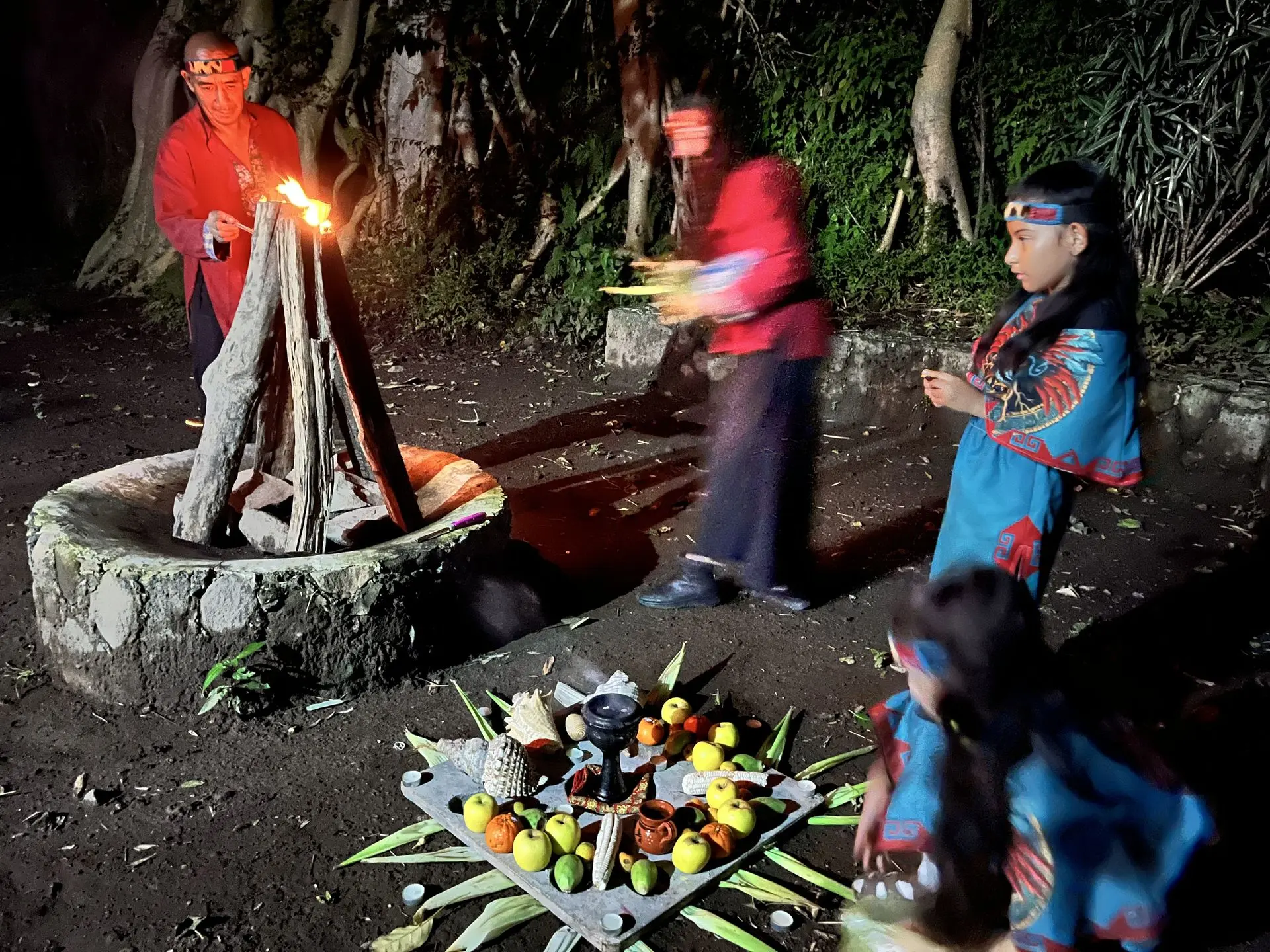 Antes de la ceremonia, los participantes visitaron el Museo de Quetzalcóatl, recordando las enseñanzas del gran maestro del Anáhuac. Más tarde, el Pantli fue velado con cantos y danzas dedicadas a los cuatro rumbos del universo alrededor del abuelo fuego.