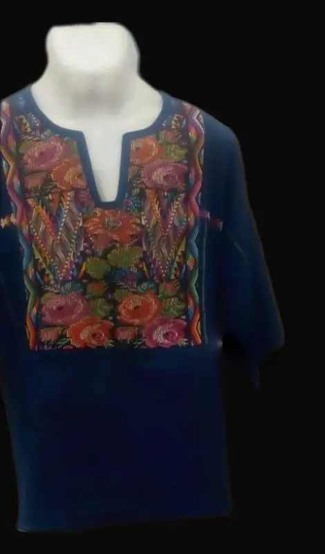 Chemise unisexe en tissu tissé au métier à pédale, col en V, manches 3/4, broderie multicolore sur le devant.